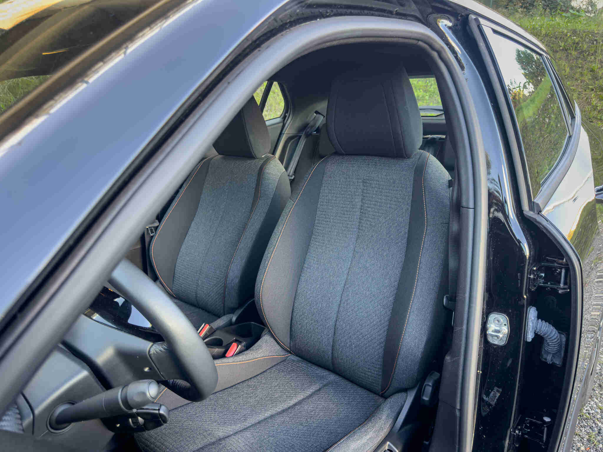 - Estofos Em Tecido Renzo - Preto Com Pespontos Em Cor De Laranja Sunrise